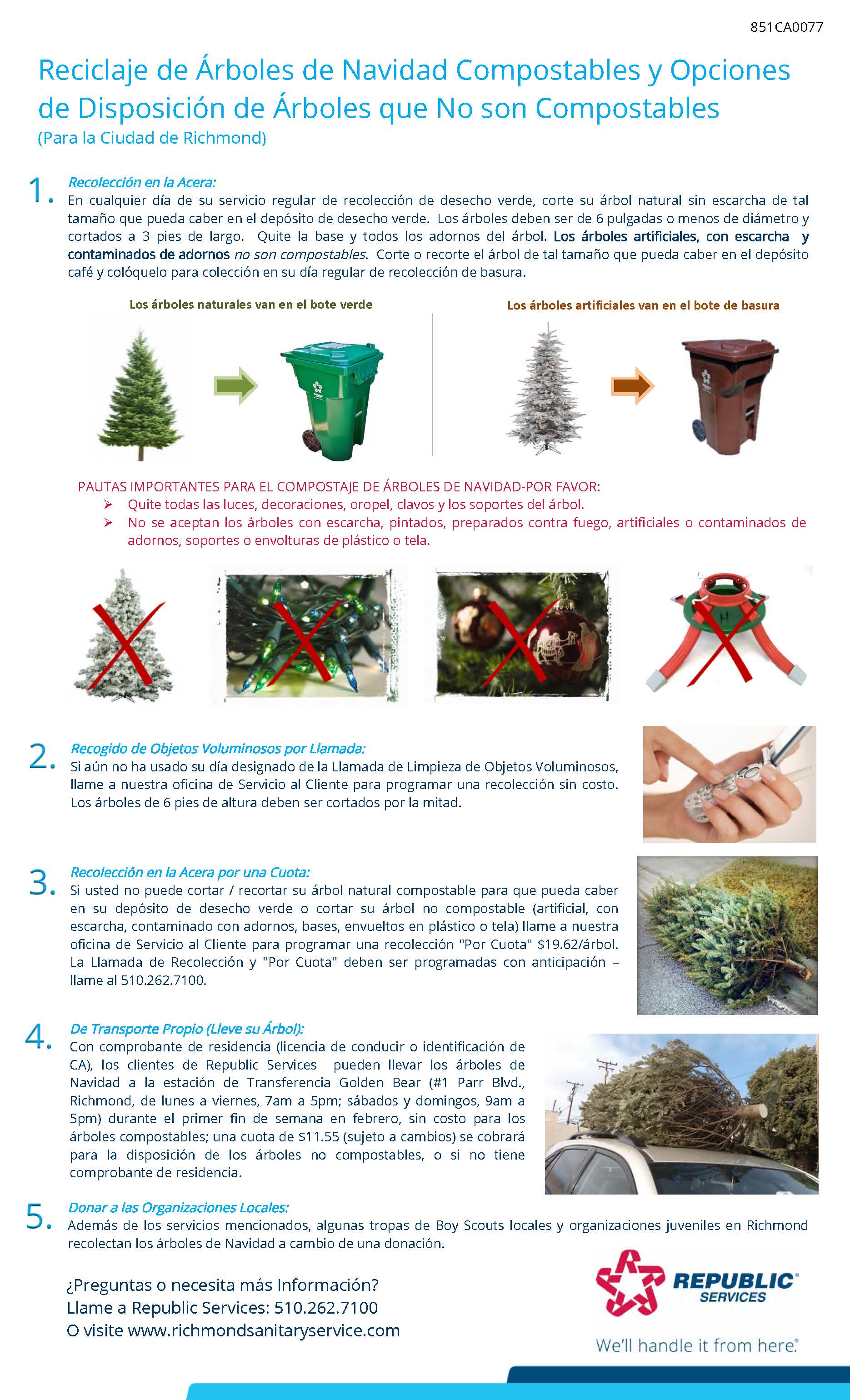 Document Center / Trash and Christmas Tree Pick Up Schedule Not Tree recycling instructions in West County | Richmond Standard Holiday Recycling & Special Services (City of Fairfield) &mdash Southern Nevada Christmas Tree Recycling Program Village Offering Curbside Christmas Tree Pickup | Oak Lawn, IL Patch Bulky Items & On Call Cleanups | Richmond, CA Official Website CHRISTMAS TREE COMPOSTING DeSoto Residents Urged To Recycle Christmas Trees Focus Daily News Terms Of Service Republic Services